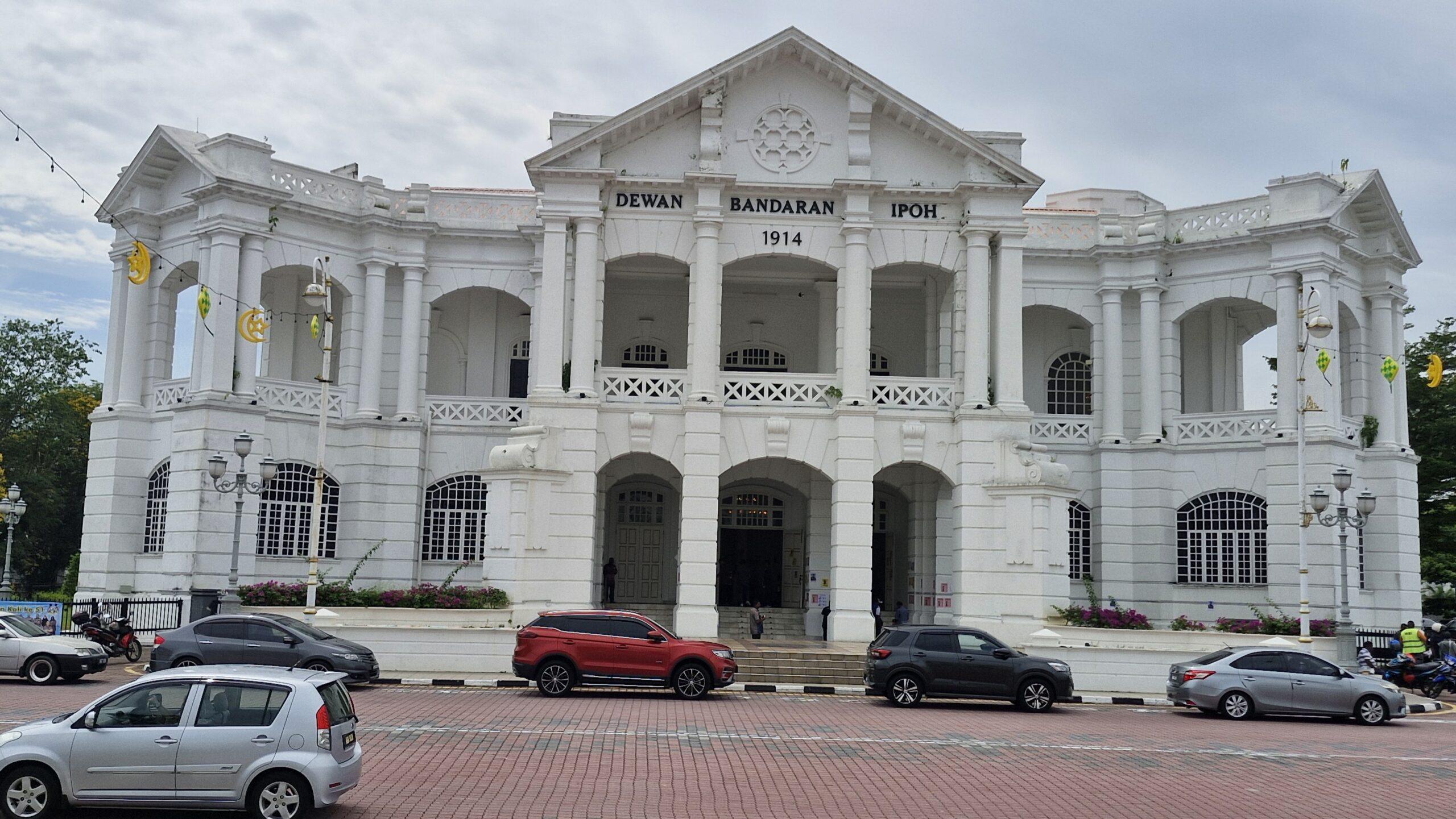 En s’en rapprochant on découvre les bâtiments administratifs typiques des villes anglaises. La cour de justice se trouve de l’autre côté du trottoir et fait face au bel hôtel de ville. Ces bâtiments blancs de style palladien sont emblématiques de la main mise britannique. Ils nous replongent dans la période de splendeur de Ipoh.