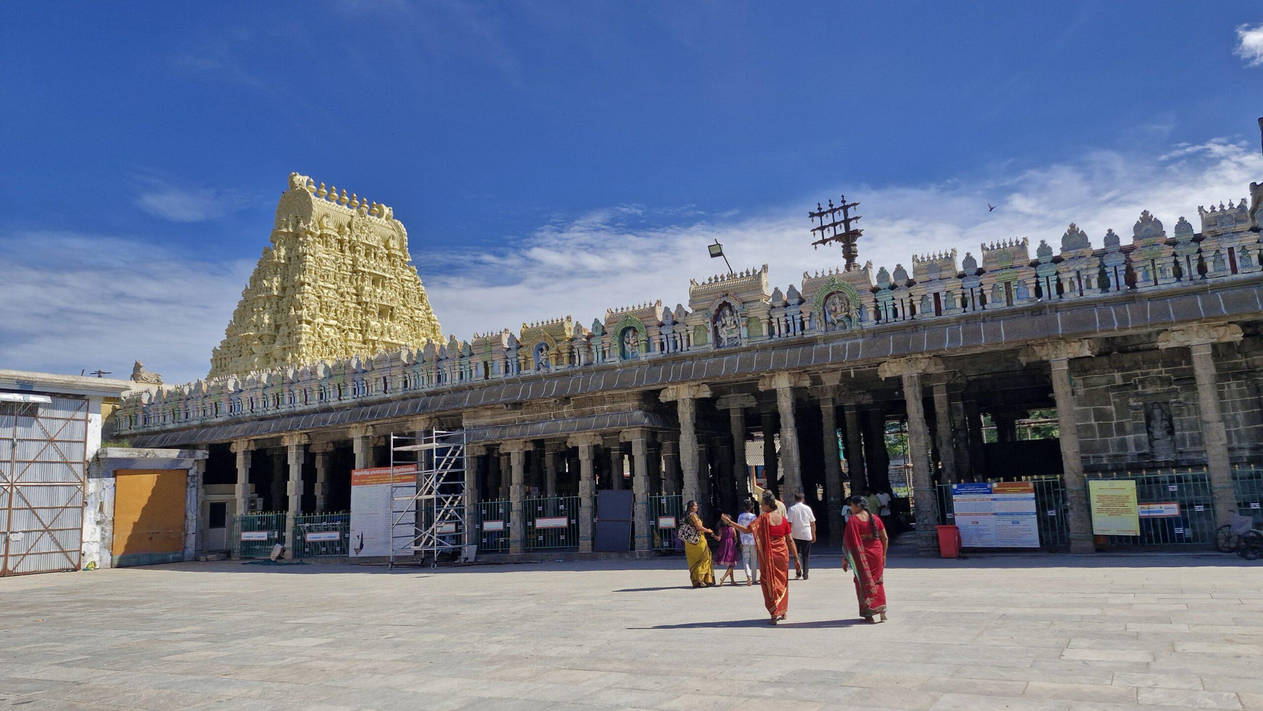 C’est le plus grand temple de la ville avec 3 immenses cours ou prakarams, ses énormes gopurams, ses nombreux sanctuaires, et ses magnifiques madapams ou halls à piliers.