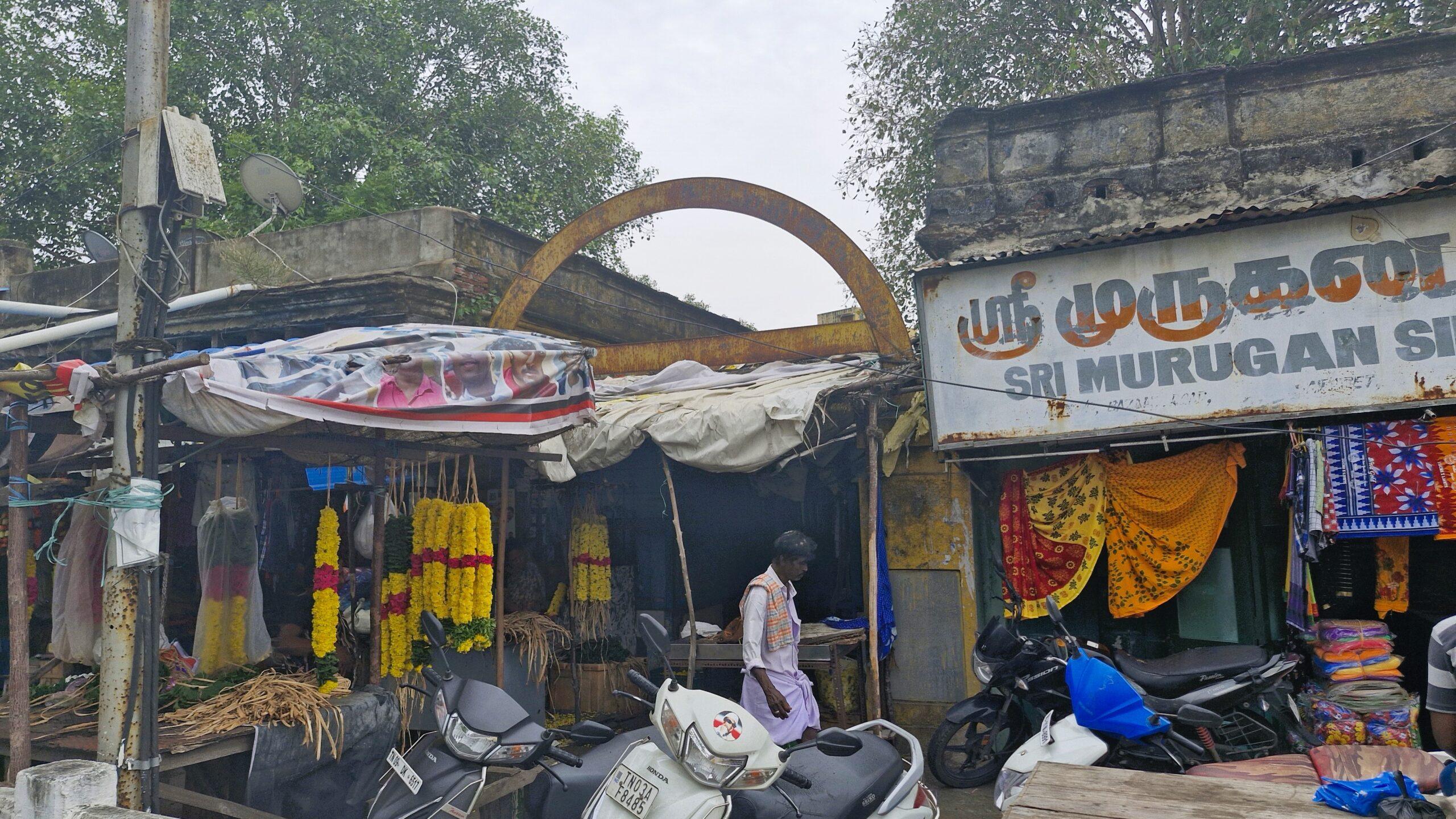 Les petites rues surpeuplées d’une foule d’acheteurs mènent à un des marchés les plus authentiques de Chennai. Le dimanche matin celui-ci bat son plein. Les étals se succèdent sur la rue principale. Des arches en fer érodé annoncent le dédale des petits marchands de poisson et de viande.