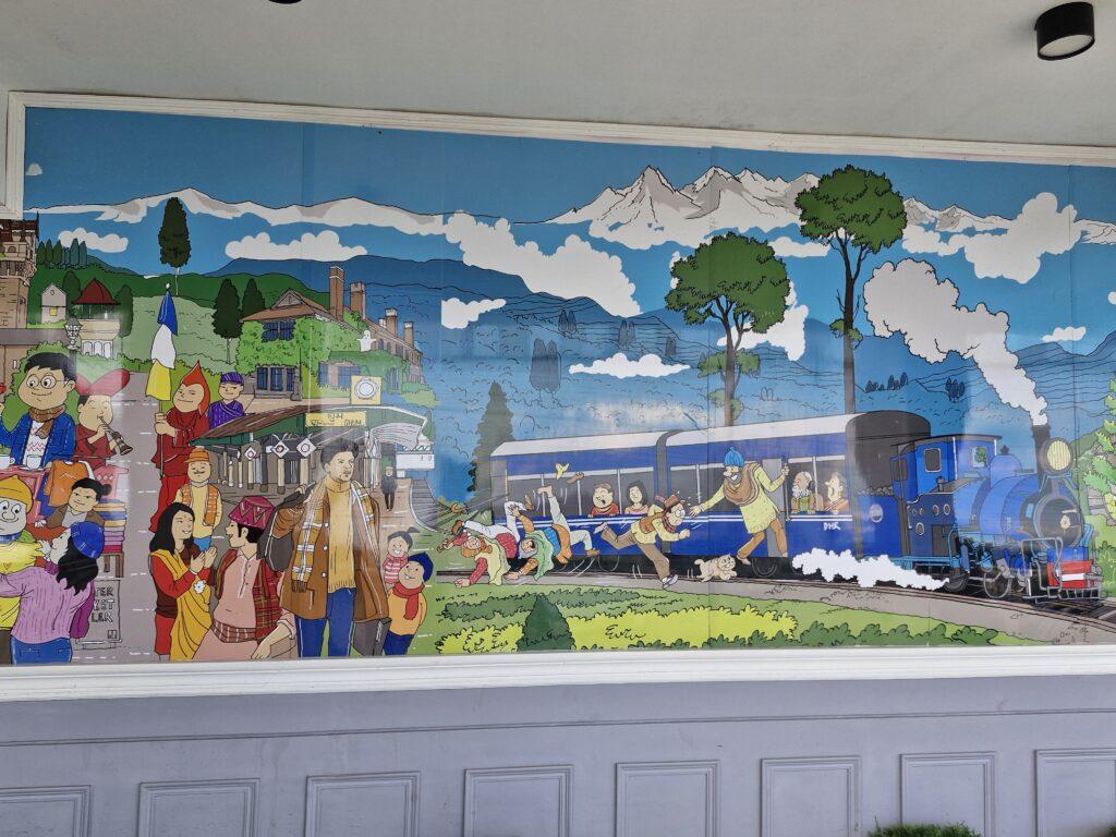 Le petit train bleu circule entre les plantations de thé. Moins de paysages spectaculaires que sur la portion Shimla ou de prouesses techniques que sur le train de Darjeeling. Mais un émerveillement constant à voir se succéder les collines à thé parsemées de forêts d’eucalyptus. Des bisons ou des singes traversent le paysage. Si les petites gares n’ont pas l’unité architecturale de la ligne de Shimla, en revanche les villages de maisons multicolores ajoutent beaucoup à la beauté du trajet.