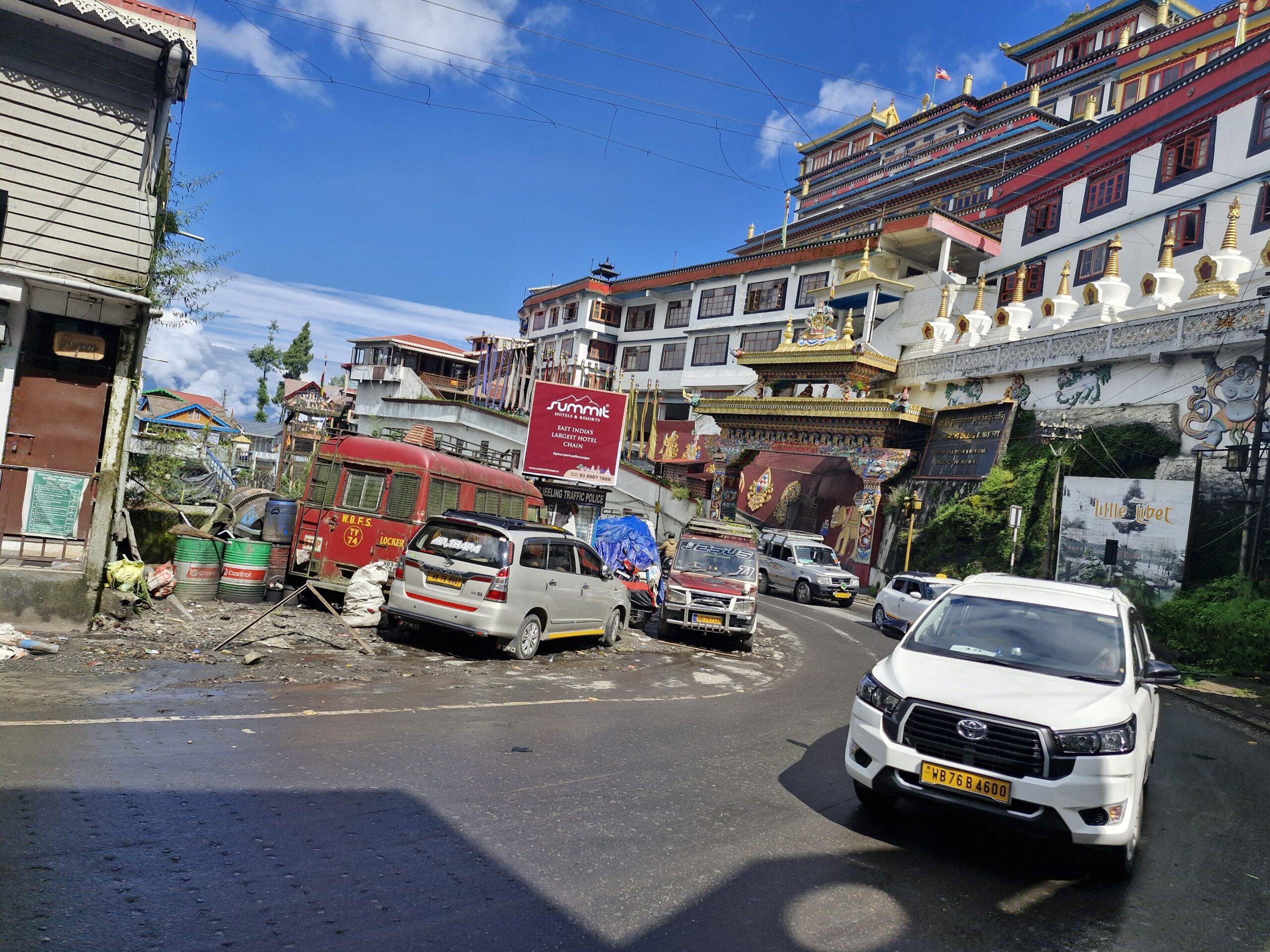 Dans les faits le toy train de Darjeeling part de New Jalpaiguri. De cette ville industrielle surpeuplée et très bengalie on rejoint Darjeeling en 5h. Depuis Chennai on rejoint New Jalpaiguri en 2h via l’aéroport de Bagdogra + 1h de taxi, à moins que vous ne trouviez un bus mais le coin est compliqué.